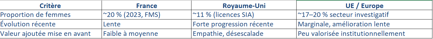 Comparatif : présence féminine dans la sécurité privée européenne