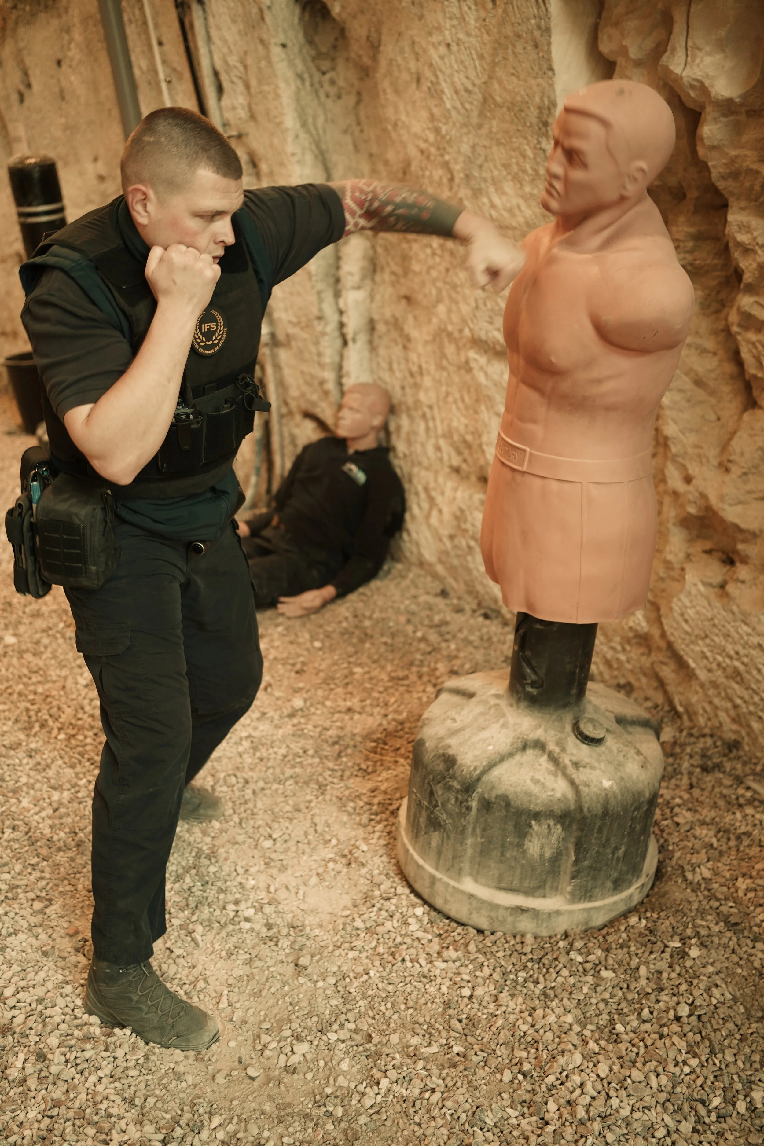 Zones d’entrainement à thèmes (combat rapproché, défense couteau, utilisation du bâton télescopique.)